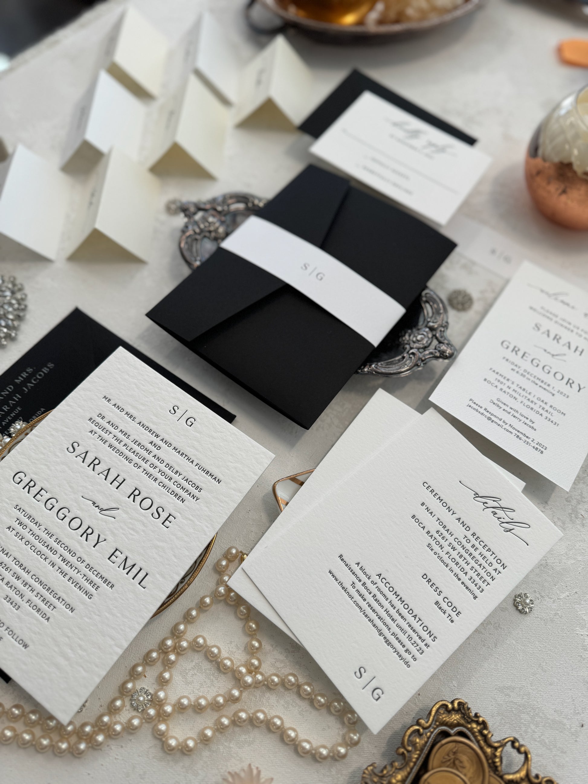 - Letterpress details and rsvp card