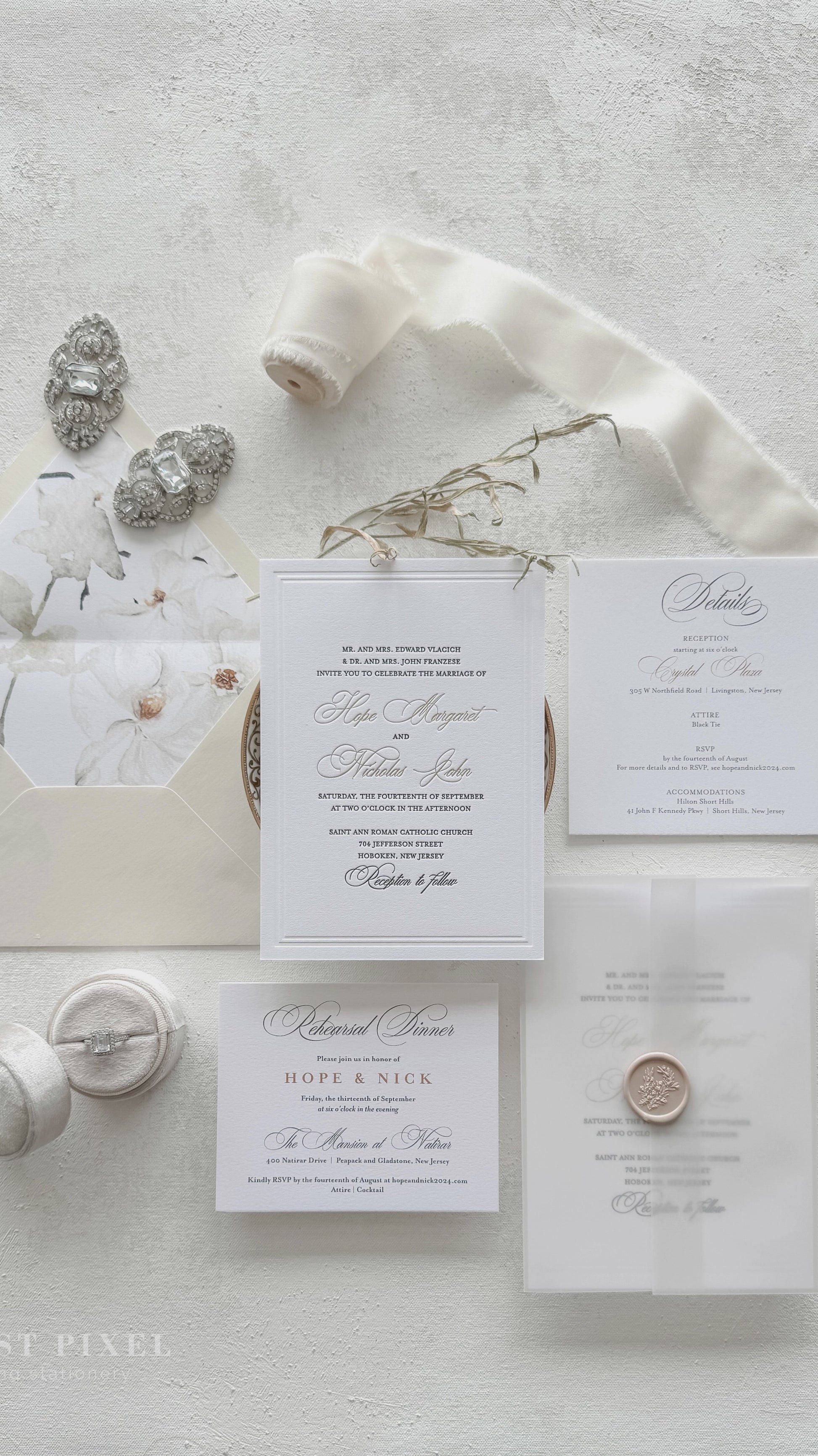 Elegant Gold Foil Wedding Invitations | Letterpress Invites Style 1109