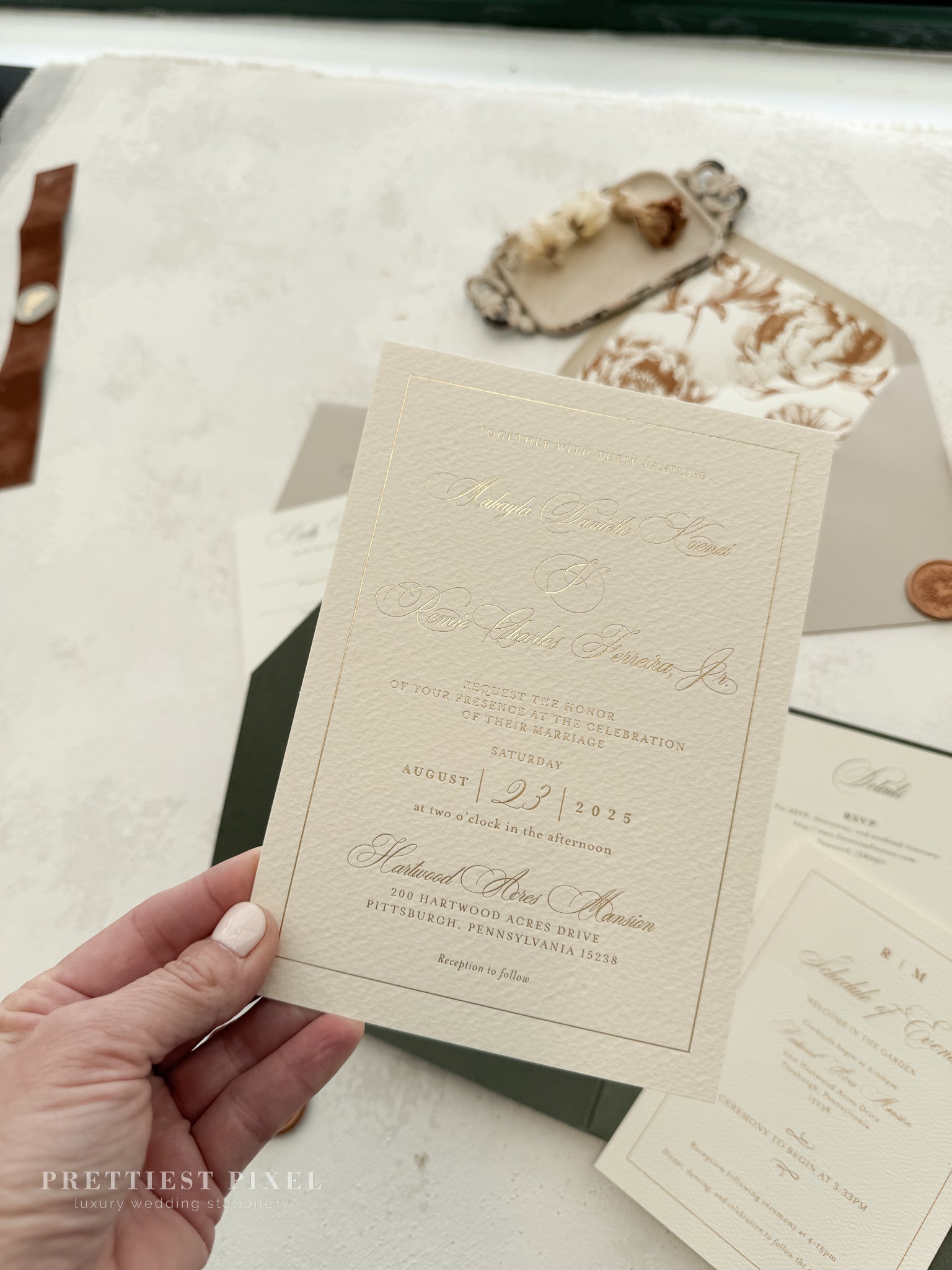Order a sample invitation pack to see and feel the quality, thickness, and finishes in person.