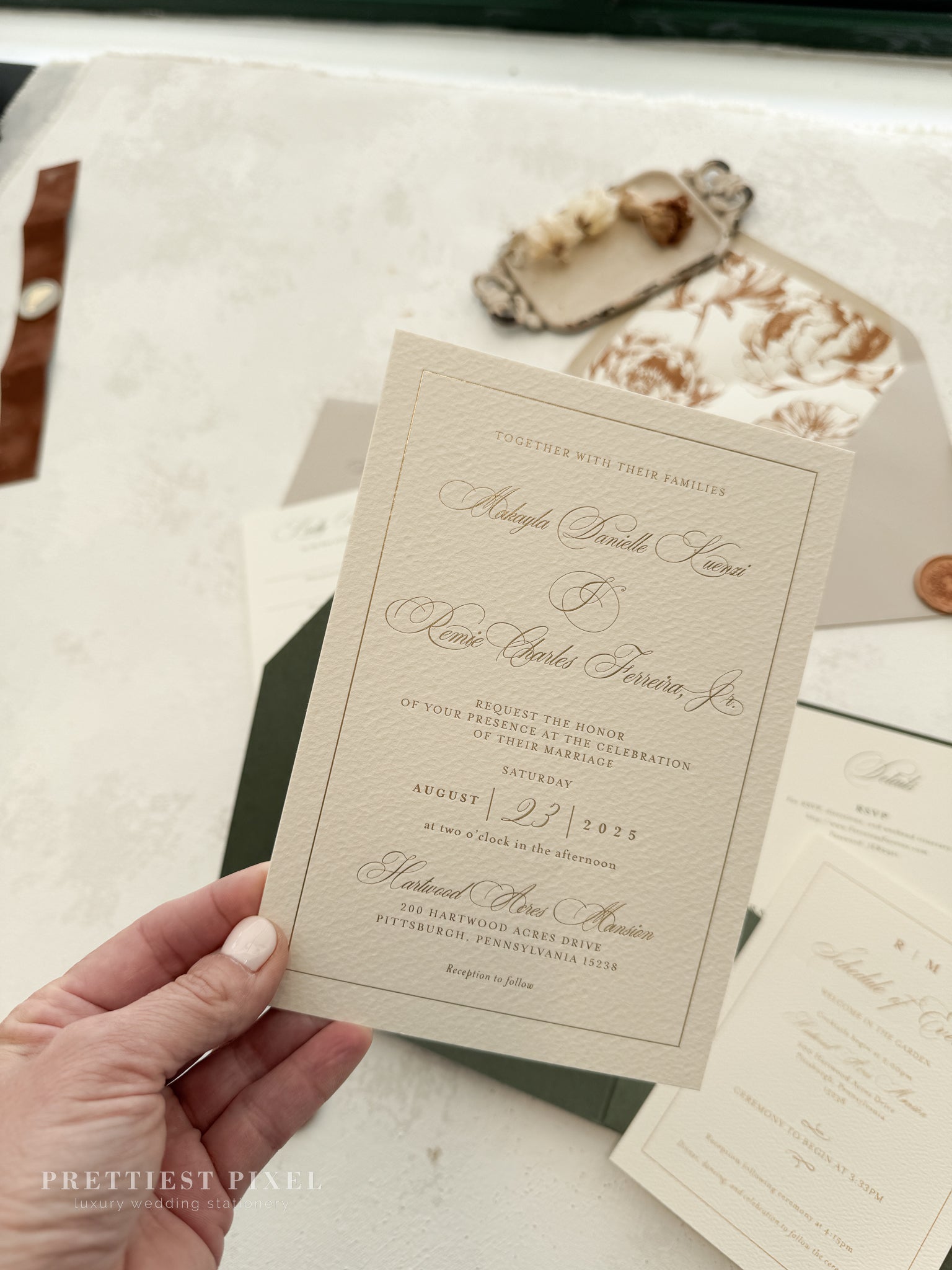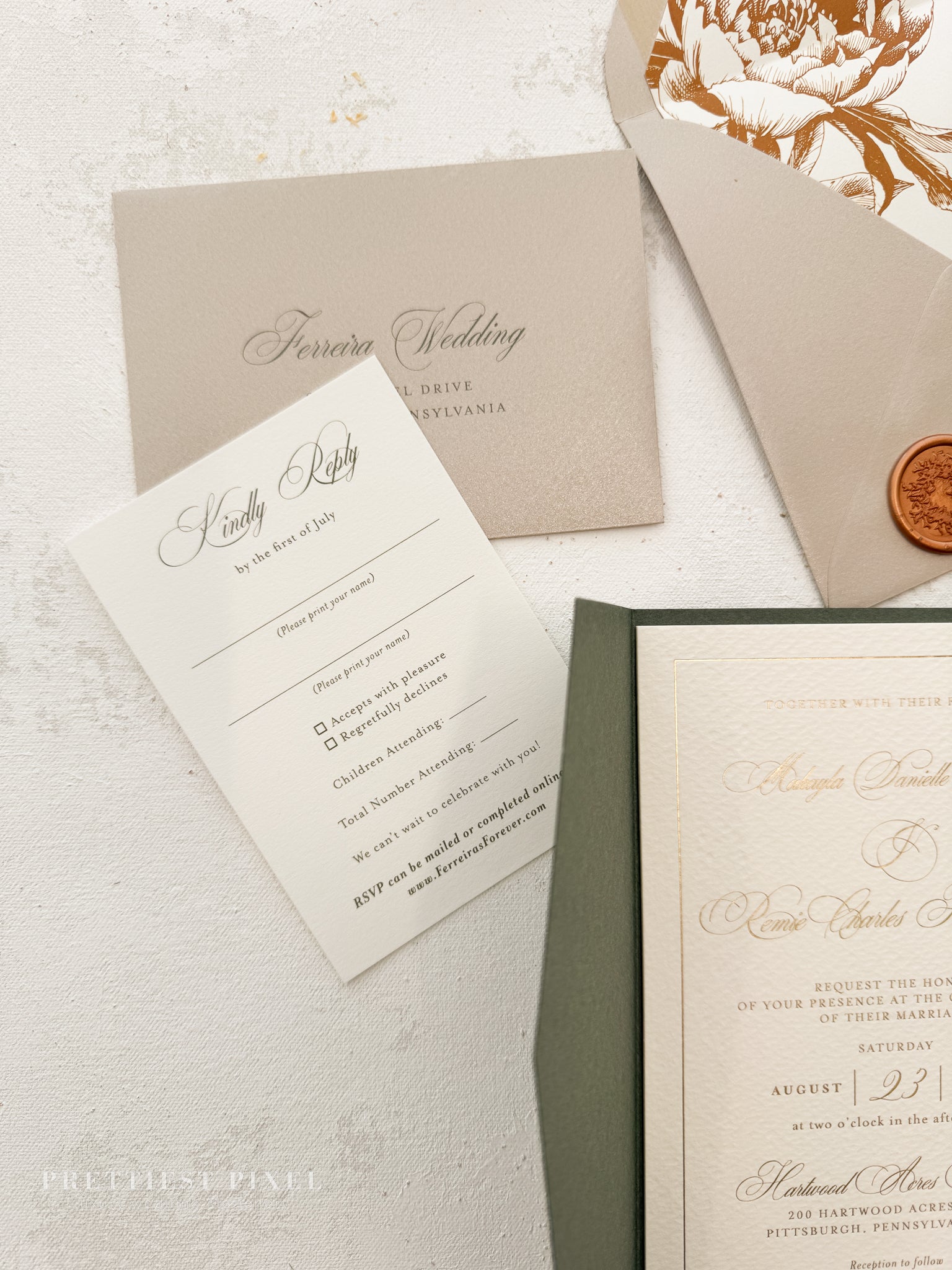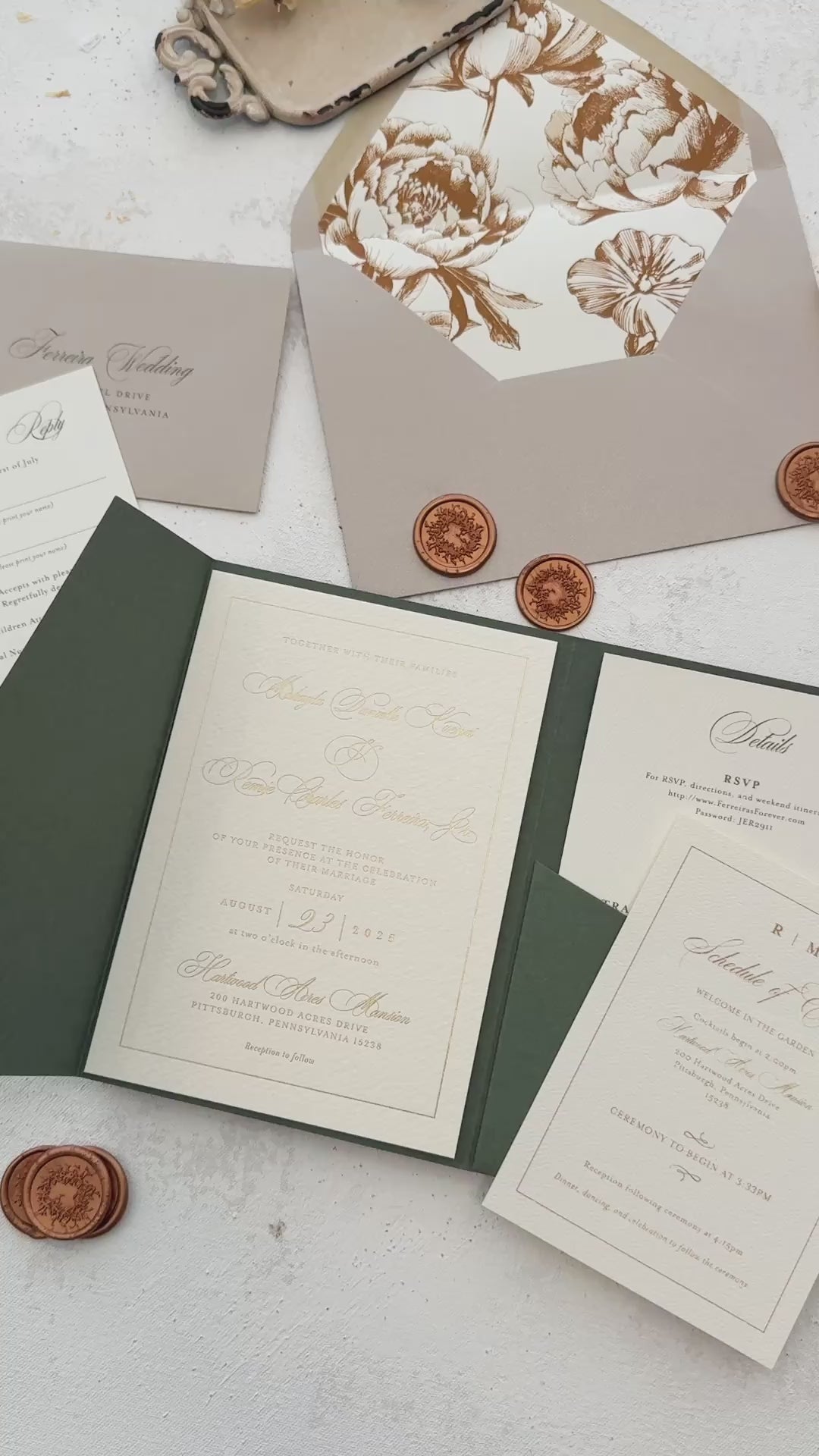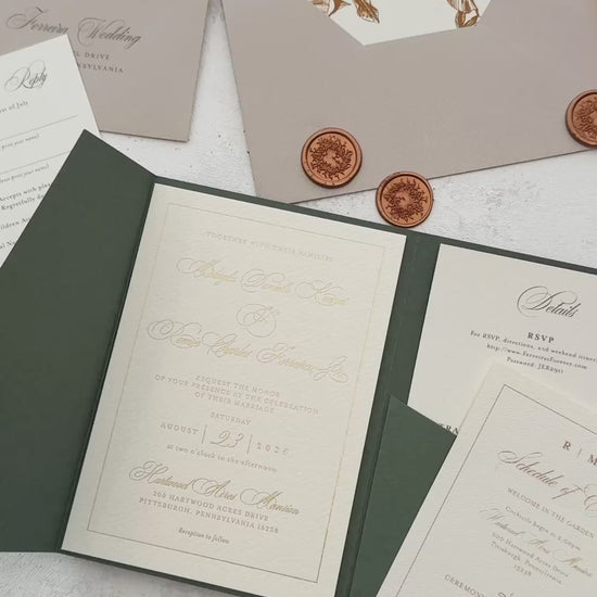 Green Wedding Invitation with Foil Invitation | Style 220