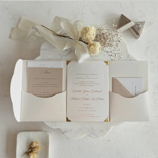Order a sample invitation pack to see and feel the quality, thickness, and finishes in person.