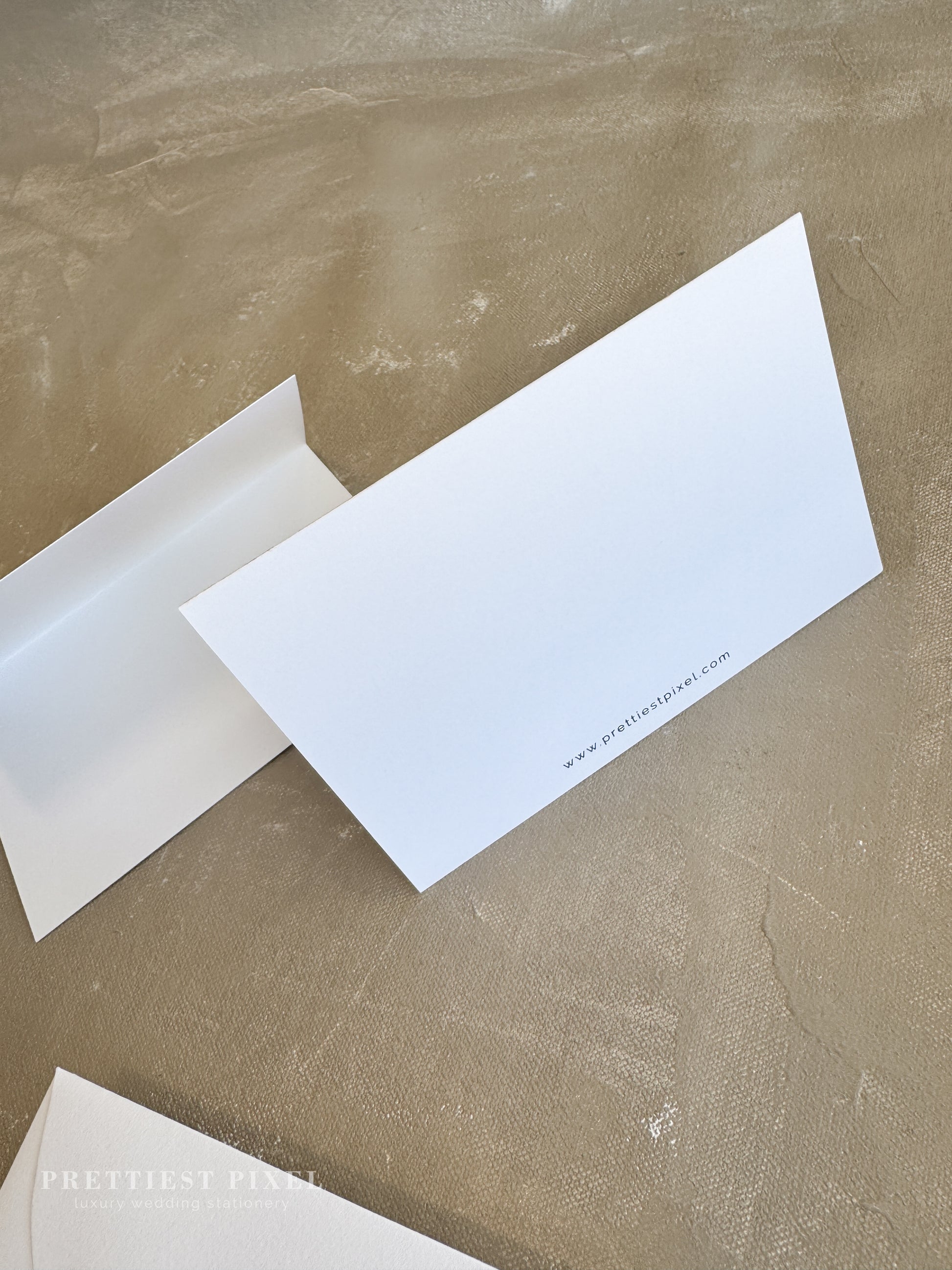 This stationery gift set includes 8 premium matte cardstock notecards—two of each unique design—paired with 10 high-quality euroflap envelopes that enhance presentation and ensure secure mailing. The blank interior allows full customization, making these personalized notecards ideal for sending quality thank you notes or thoughtful greetings.