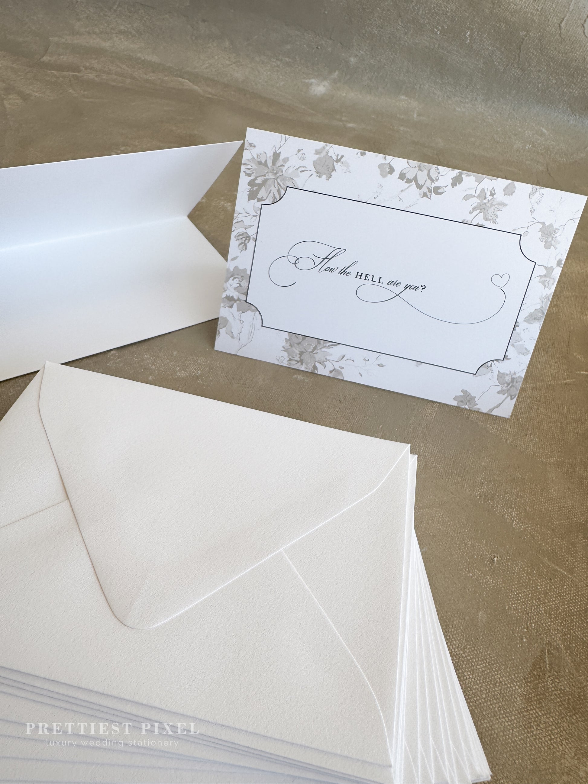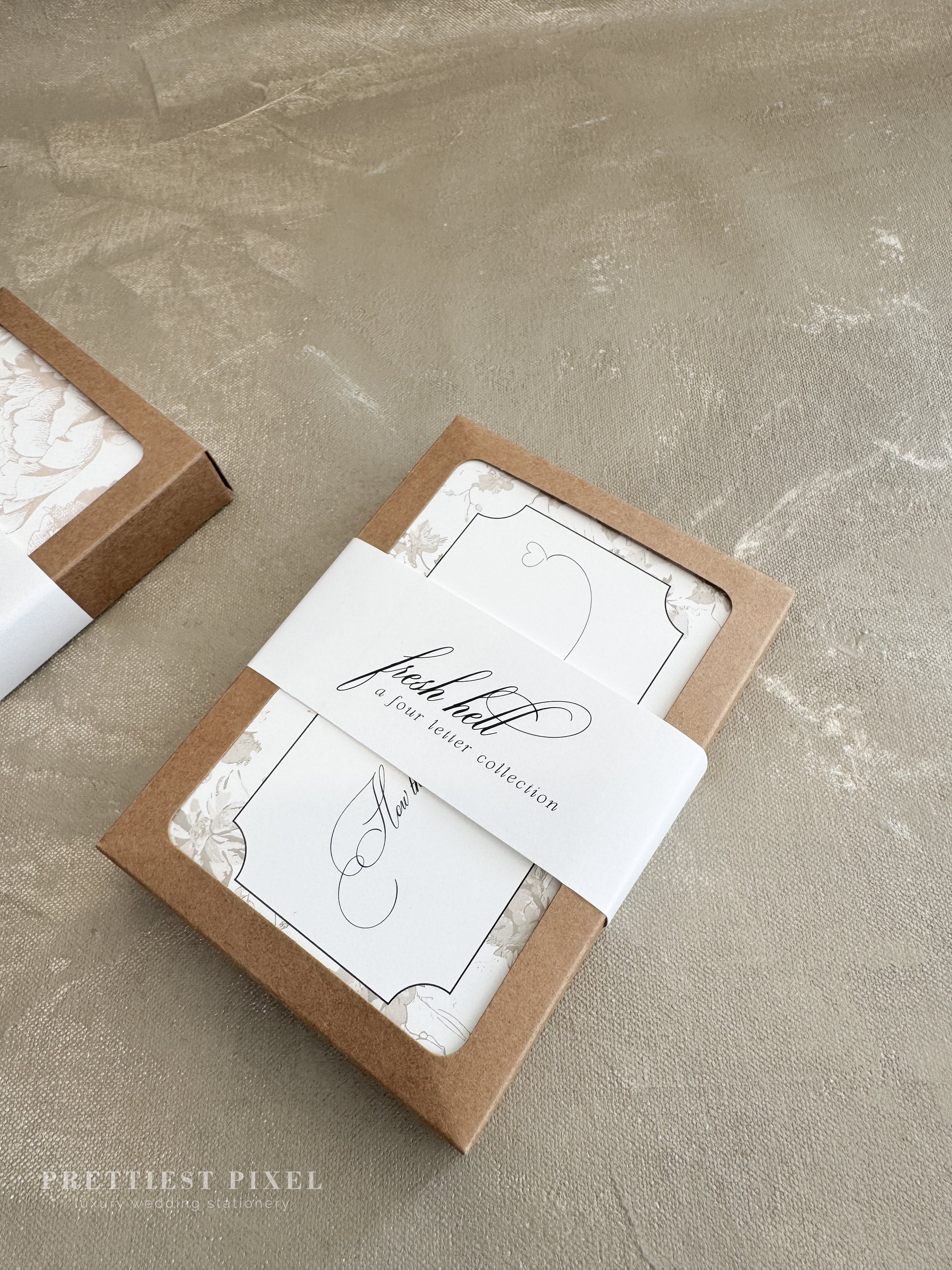 The Fresh Hell collection combines an elegant stationery design with durable materials to create a luxury stationery set that professionals and families alike will appreciate. Each folded notecard set arrives beautifully boxed, ready to gift or use immediately.