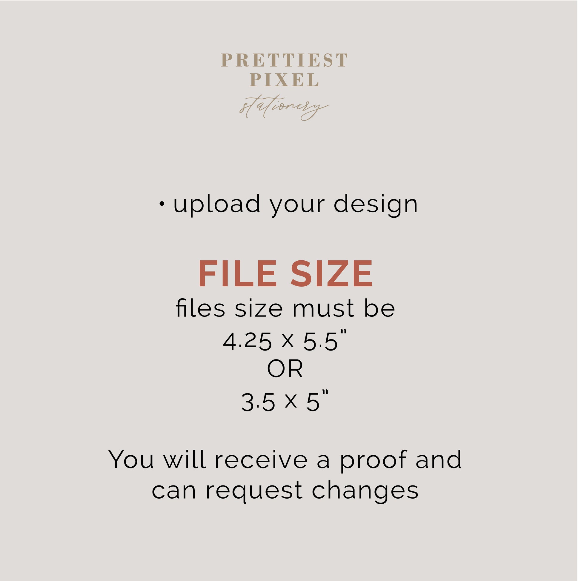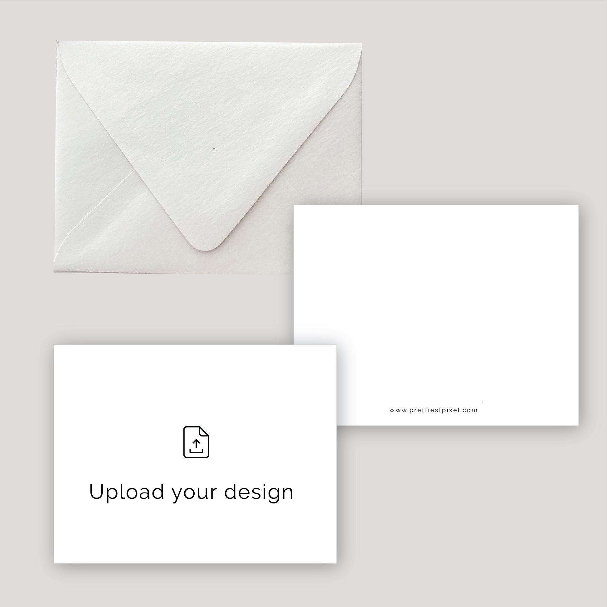 Set of 8 notecards. Upload your design here and we'll send a proof to the email on the order.
